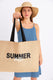 Ön yüzünde yer alan "Summer Hello" yazılı siyah baskı detayı ve siyah sapları ile modern ve dikkat çekici bir stile sahiptir.